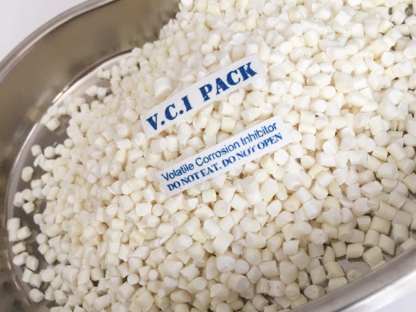 配比比例: 在通常情況下,VCI防銹母粒的添加量為塑料粒子的2%。(色母粒添加量不能超過防銹母粒含量的10%),通常情況下防銹膜的標(biāo)準(zhǔn)厚度為100μ.