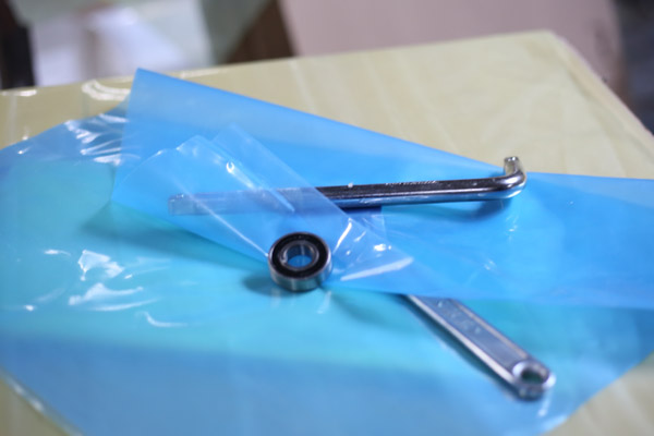 4、包裝過(guò)程---被包裝金屬和防銹膜中間,如有紙墊板、木類、塑料類隔板等阻隔材料,特別注意阻隔材料不能直接接觸金屬產(chǎn)品。以免阻隔材料含S、CL化學(xué)成分,影響防銹效果